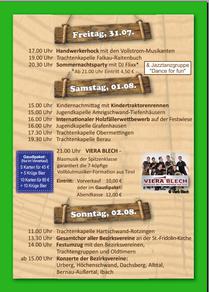 Nach einem gemütlichen Handwerkerhock und einem Platzkonzert der Trachtenkapelle Falkau-Taitenbuch wollen wir mit Jung und Alt eine Sommernachtsparty mit DJ Flixx, unterstützt von der Jazztanzgruppe "Dance for fun", feiern.